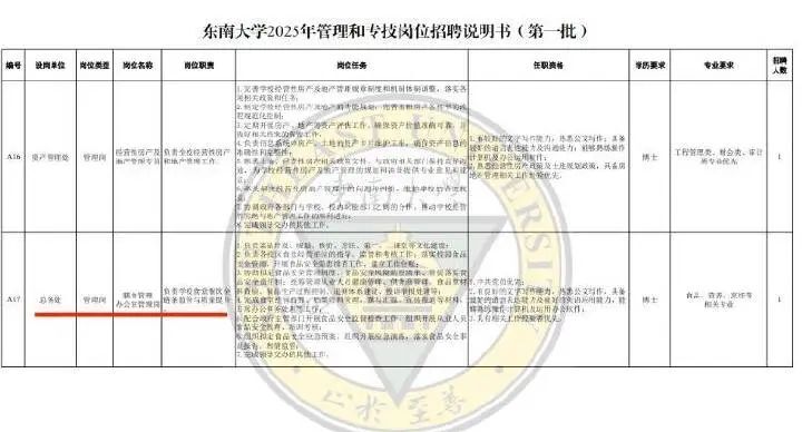 东南大学招聘膳食管理,学历要求博士。学校官网截图