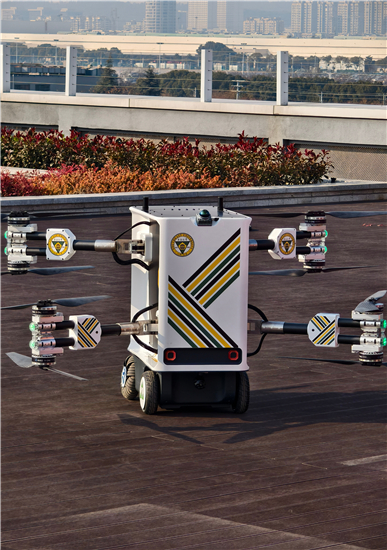 相较于“东大·鲲鹏1号”,这款“升级版”更轻便小巧,机臂可折叠,可更自由、快速地转换形态,更灵活、高效地完成各类既定任务。作为一款集空中飞行与陆地行驶于一体的复合式作业平台,“东大·鲲鹏2号”设计聚焦于多功能适配性、高任务可靠性及空地一体化的无缝操作体验,旨在为专业级作业场景提供高效的解决方案,对国家发改委关于低空经济发展方向提出的“先载货后载人、先隔离后融合、先远郊后城区”十八字方针作出积极响应。