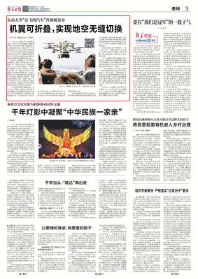 发布会上,在鲲鹏2号送来的“空中贺信”中,一份可载人的“东大·鲲鹏3号”飞行汽车设计手稿也藏身其中。殷国栋透露,预计在今年东南大学校庆前后,鲲鹏3号将正式亮相。