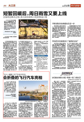 1月23日,东南大学九龙湖校区湖畔,一辆飞行汽车缓缓升空,越过粼粼湖面,不到2分钟,稳稳降落在对岸三江楼五楼的户外平台。这是东南大学汽车科研团队研发的“东大·鲲鹏2号”,不仅更轻便,机臂还可以折叠。打开前就像一个储物箱,打开后则变成了一个可以飞行的储物汽车。