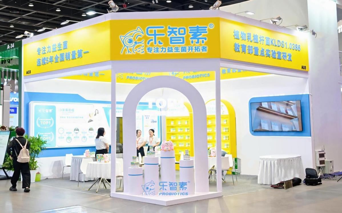 走出神圣的学术殿堂,步入热烈的产业展区,乐智素品牌温暖活力的黄蓝色展台成为会场耀眼的焦点。展台设计巧妙融合了科技感与亲和力,生动传递出品牌专注“脑健康”的核心价值。