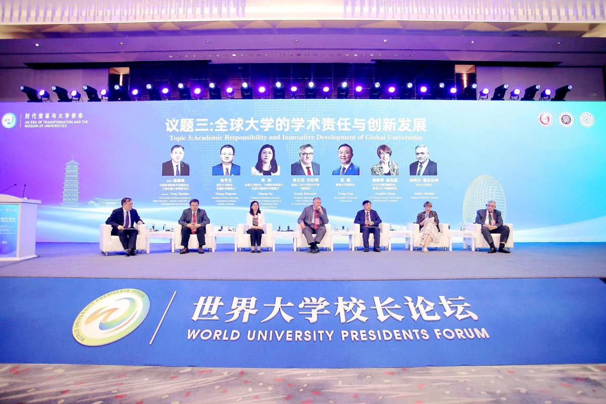 中国科学院院士、东南大学校长黄如受邀出席论坛,并在圆桌讨论中围绕“全球大学的学术责任与创新发展”作了主题发言。黄如分享了关于学术责任的三点思考:第一,大学要坚持学术责任与学术使命相统一。学术是大学之魂,是大学的初心、本心和最本质属性之一,大学应在服务国家发展、促进社会发展和人类文明进步、推动构建人类命运共同体的行动中践行学术责任。黄如介绍了东南大学将服务国家作为最高追求,在科技创新中实现学术责任与学术使命高度统一的办学历程与实践探索。第二,大学要始终保持学术的引领性和为人属性。黄如强调,引领性的科技创新应以人为本,要发展可控的、可持续提升人类幸福指数的技术。“大科技生态”是大势所趋,科技与人文互为边界和基础,科技发展要遵循人文社科的约束条件。第三,大学要引导全社会营造健康的、可持续发展的创新生态,倡导严谨求实、敢为人先、锲而不舍的科学家精神。黄如希望与海内外高校加强合作,共同坚守大学的学术使命和学术责任,秉持大学的学术品格,学校不为排名所累、学术不为时俗所惑,真正以创新改变世界,以科技造福人类。