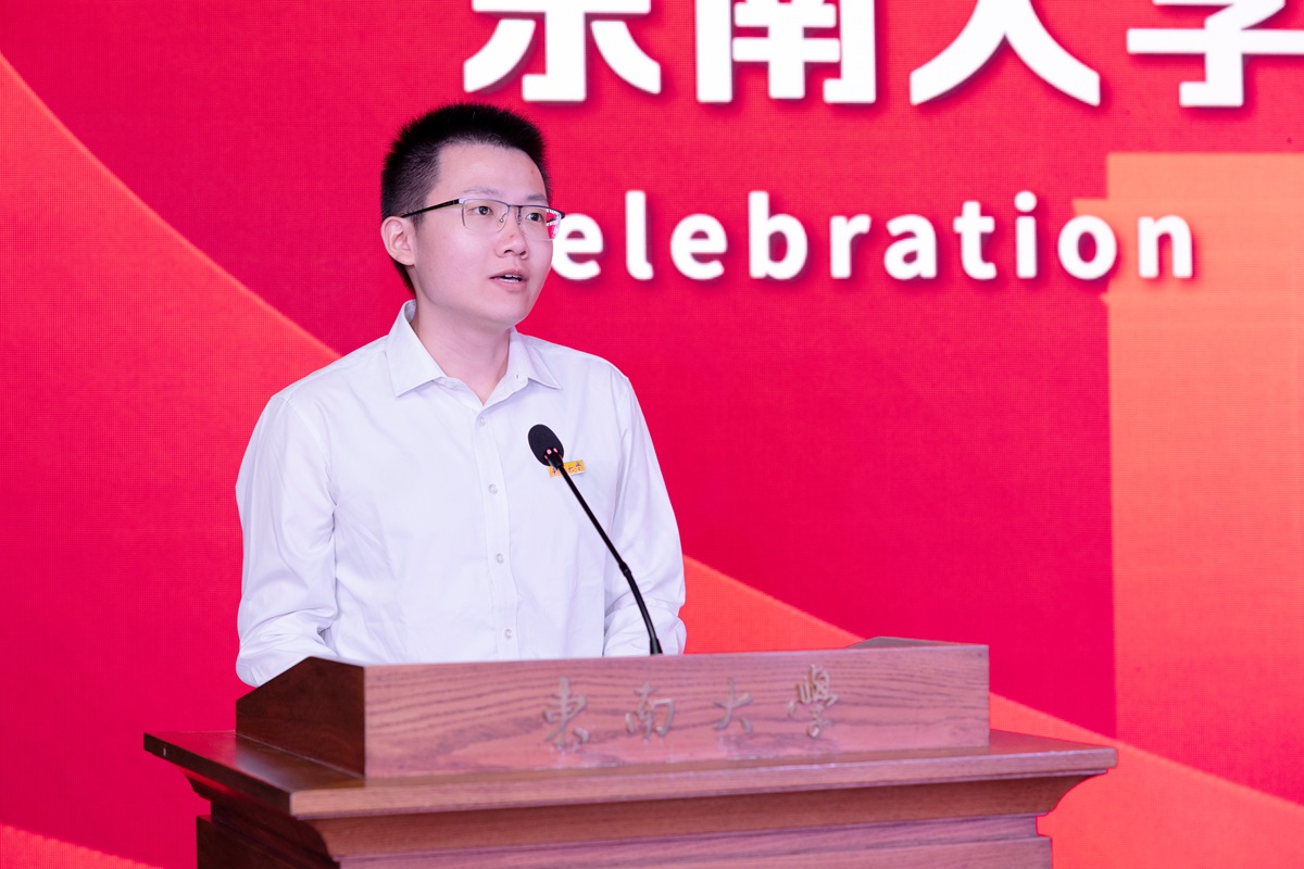 学生代表、自动化学院张恒同学在发言中表示,每位东大老师,都是东大精神的缔造者与传承人,并代表东大学子向所有老师送上了节日祝福。