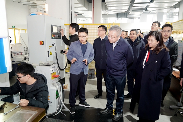 任友群首先参观了依托东南大学机械工程学院建设的江苏省高档数控机床及成套装备制造业创新中心。该中心面向先进设计、智能制造、先进机电等方向,自2012年开始与企业联合培养卓越工程师,在高层次工程人才培养方面走在全国高校前列。