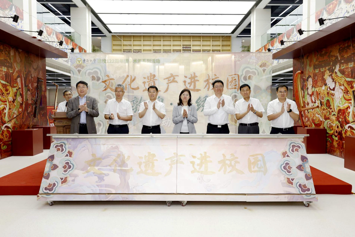 教育部发展规划司副司长邓立红,敦煌研究院副院长郭青林,敦煌石窟保护研究基金会秘书长宋真,云南省南华县委书记马特,中国科学院院士、东南大学校长黄如,校党委常务副书记刘攀,江苏省哲学社会科学界联合会副主席、东南大学党委原副书记任利剑等出席“文化遗产进校园”启动仪式,副校长钟文琪主持仪式。