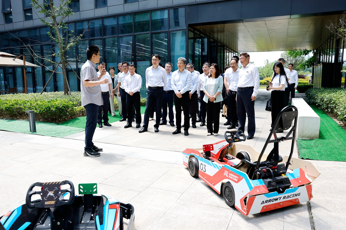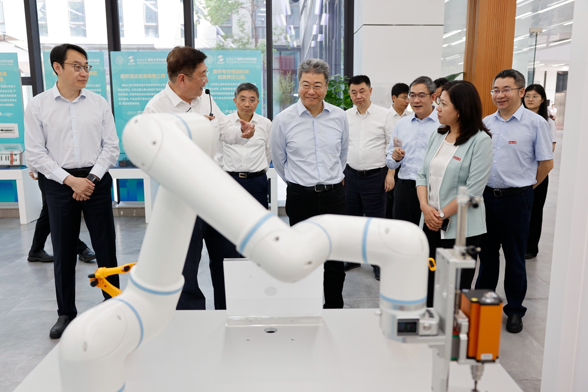 在南京,吴岩一行走访了紫金山科技城和东南大学国家大学科技园,听取了东南大学副校长黄大卫对于科技园情况的介绍,与师生代表、企业负责人代表面对面交流,点对点了解政产学研用结合实践过程中的一线经验。他表示,南京科技创新高度活跃,各高校紧扣“因地制宜发展新质生产力”的重大任务,充分发挥科技创新支撑作用,加强科教融汇、产教融合和成果转化,产出了一批服务产业高质量发展的标志性成果,为新质生产力发展厚植沃土。