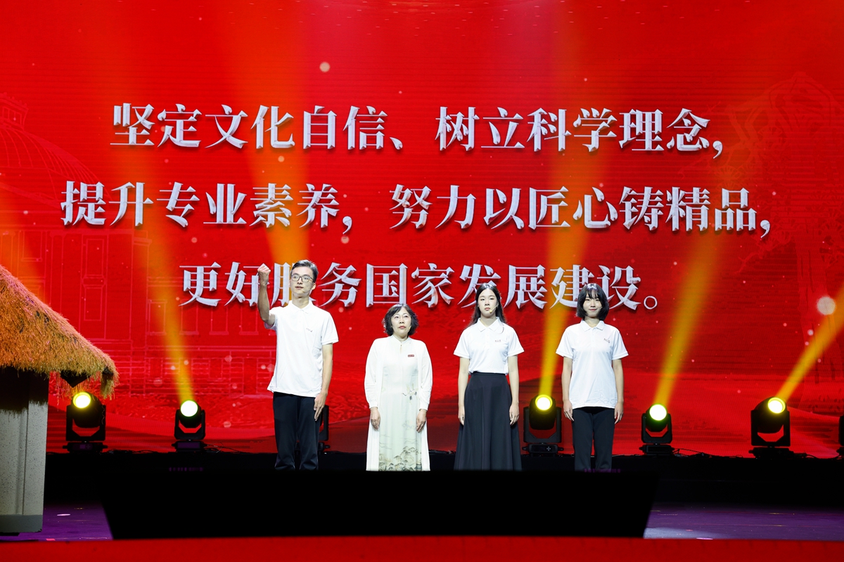 第四篇章“壮阔未来 大道如虹”采用全息投影,在现场营造出充满未来感和科技感的氛围,南极科考队员、自动化学院教师代表葛健,海洋信息团队、信息科学与工程学院教授方世良,亚太地区历史城市与建筑遗产保护团队、建筑学院教授董卫,计算机科学与工程学院、软件学院、人工智能学院教授张敏灵逐一登台,用一封封穿越冰原、发自深海、跨越过往、通往未来的信,表达了东大人在中国式现代化征程中追光而行、步履不停的追求。奥运冠军、东南大学2022级研究生张雨霏通过视频惊喜亮相,勉励学弟学妹们做极限的探索者,向着梦想坚定前行。
